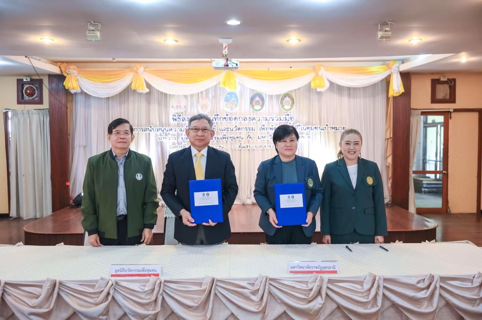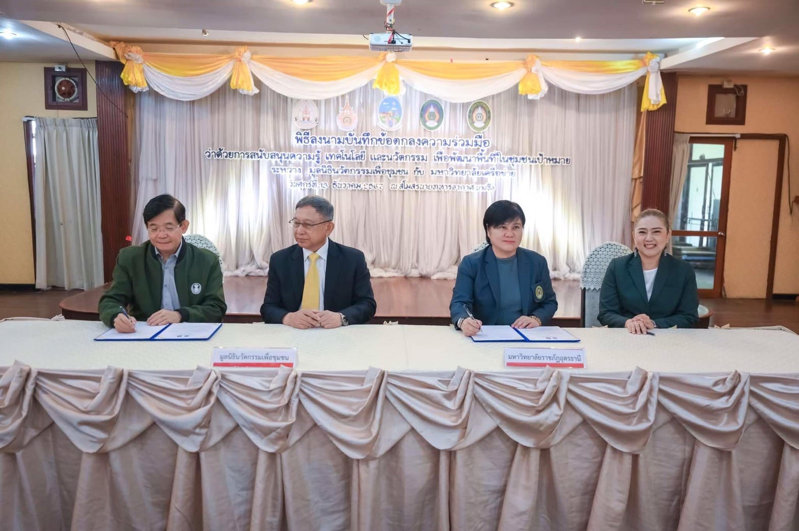 ศูนย์วิทยาศาสตร์ มหาวิทยาลัยราชภัฏอุดรธานีมีนโยบายในการเป็น “สถาบันแห่งการเรียนรู้ สร้างนวัตกรรมและปัญญา สู่การพัฒนาท้องถิ่น” ด้วยการนำเป้าหมายของการพัฒนาอย่างยั่งยืน (Sustainable Development Goals : SDGs) มาเป็นแนวทางในการดำเนินงาน วันศุกร์ที่ 13 ธันวาคม 2567 นางโสภิตา เลิศสุบิน รองผู้อำนวยการสถาบันวิจัยและพัฒนาและหัวหน้าศูนย์วิทยาศาสตร์ฯ ได้เข้าร่วมพิธีลงนามความร่วมมือระหว่างมหาวิทยาลัยราชภัฏอุดรธานีและมูลนิธินวัตกรรมเพื่อชุมชน เพื่อสนับสนุนความรู้ด้านเทคโนโลยี และนวัตกรรมเพื่อชุมชน ณ สโมสรนายทหารอากาศ บางซื่อ กรุงเทพมหานคร ภายใต้การนำของผู้ช่วยศาสตราจารย์ ดร.คณิศรา ธัญสุนทรสกุล อธิการบดีมหาวิทยาลัยราชภัฏอุดรธานี โดยมีพลอากาศเอก ดร.ประจิน จั่นตอง อดีตรองนายกรัฐมนตรี ในฐานะประธานมูลนิธิฯ และมีมหาวิทยาลัยเครือข่าย(มรภ.นครปฐม, ม.นครพนม, มทร.ธัญบุรี) ร่วมลงนามเพื่อสนับสนุนความรู้ เทคโนโลยี และนวัตกรรม เพื่อพัฒนาพื้นที่ชุมชนเป้าหมาย ซึ่งมหาวิทยาลัยจะเป็นหน่วยพิจารณาเลือกชุมชนเป้าหมาย เพื่อสร้างเครือข่ายความร่วมมือกับภาคประชาสังคม ภาคเอกชน ภาคราชการในการเสริมสร้างและพัฒนาคุณภาพชีวิตต่อไป