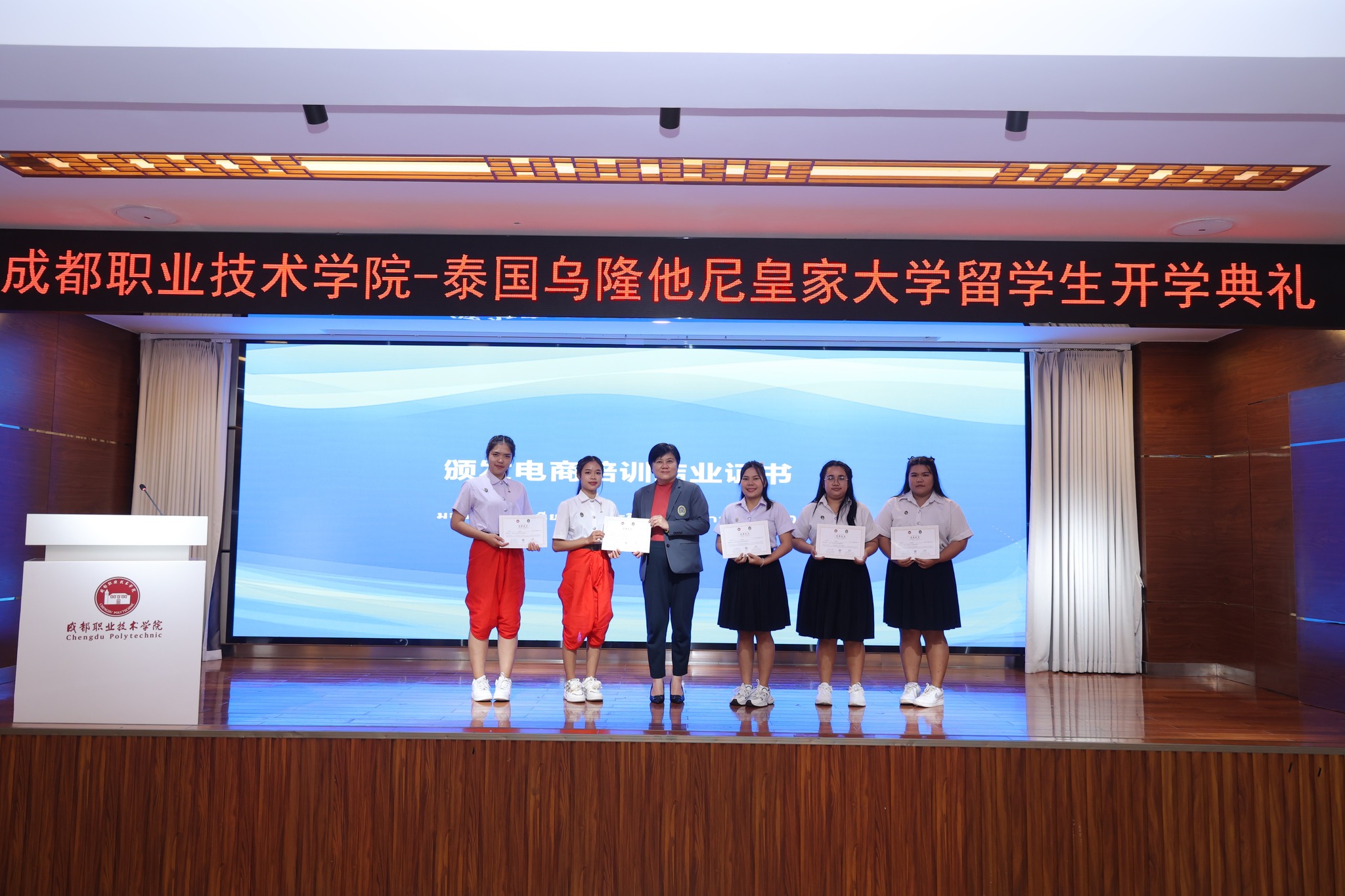 คณะผู้บริหารยังได้รับเกียรติเข้าร่วมกิจกรรมปฐมนิเทศนักศึกษาสาขาวิชาภาษาจีน คณะมนุษยศาสตร์และสังคมศาสตร์ จำนวน 20 คน ที่เดินทางมาเพื่อศึกษาในโครงการแลกเปลี่ยนนักศึกษาระหว่างสองสถาบัน ในโอกาสนี้ อธิการบดีได้กล่าวขอบคุณผู้บริหารวิทยาลัยอาชีวศึกษาเฉิงตู และกล่าวให้กำลังใจแก่นักศึกษาในการแสวงหาความรู้เพื่อพัฒนาตนเองและเตรียมพร้อมสำหรับการใช้ชีวิตในต่างแดน
