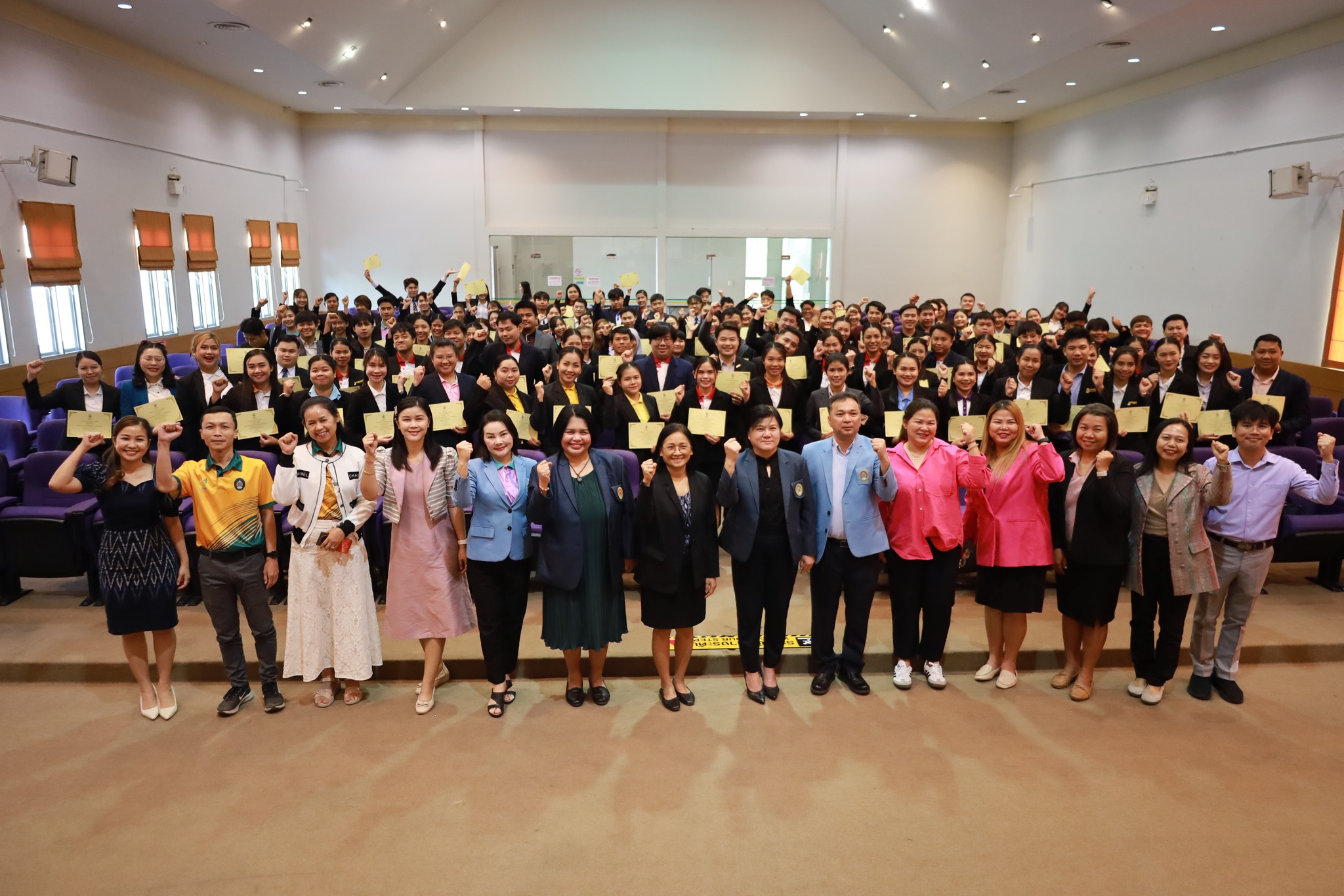 มหาวิทยาลัยราชภัฏอุดรธานีมีนโยบายในการเป็น “สถาบันแห่งการเรียนรู้ สร้างนวัตกรรมและปัญญา สู่การพัฒนาท้องถิ่น” ด้วยการนำเป้าหมายของการพัฒนาอย่างยั่งยืน (Sustainable Development Goals : SDGs) มาเป็นแนวทางในการดำเนินงาน วันที่ 15 ธันวาคม 2567 ณ ห้องประชุมสำนักศิลปะและวัฒนธรรม ผศ.ดร.คณิศรา ธัญสุนทรสกุล อธิการบดี เป็นประธานมอบวุฒิบัตรและให้โอวาท แก่ผู้สำเร็จการศึกษา โครงการส่งเสริมสมรรถนะความเป็นครู และปัจฉิมนิเทศ หลักสูตรประกาศนียบัตรบัณฑิตสาขาวิชาชีพครู ปีการศึกษา 2566 รวมจำนวน 116 คน โดยมีคณะผู้บริหาร อาจารย์ และบุคลากร คณะครุศาสตร์ ร่วมแสดงความยินดี และเป็นเกียรติในพิธี