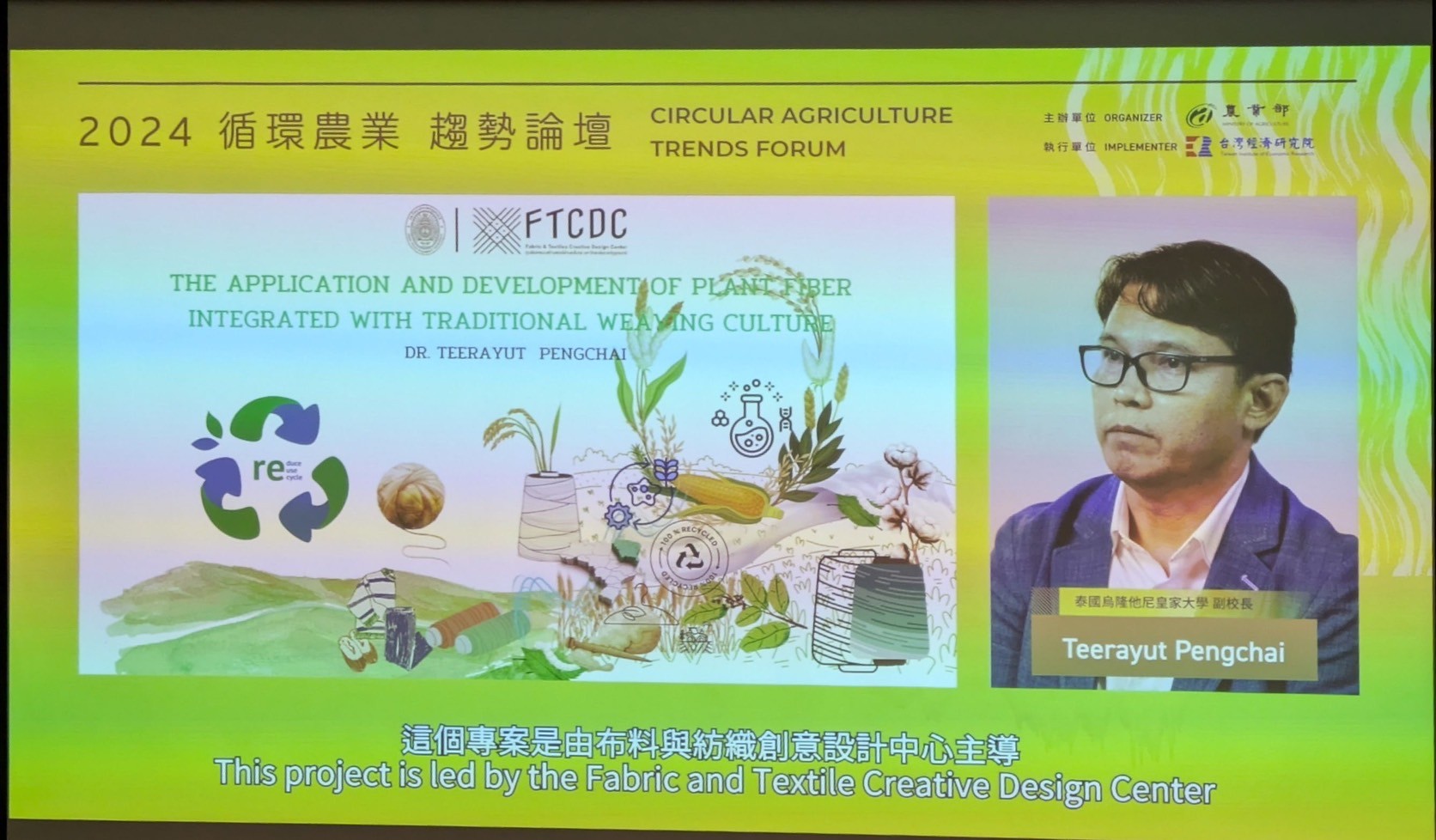 มหาวิทยาลัยราชภัฏอุดรธานีมีนโยบายในการเป็น “สถาบันแห่งการเรียนรู้ สร้างนวัตกรรมและปัญญา สู่การพัฒนาท้องถิ่น” ด้วยการนำเป้าหมายของการพัฒนาอย่างยั่งยืน (Sustainable Development Goals : SDGs) มาเป็นแนวทางในการดำเนินงาน ระหว่างวันที่ 31 ตุลาคม ถึง 1 พฤศจิกายน 2567 ผู้ช่วยศาสตราจารย์ ดร. ธีรยุทธ เพ็งชัย รองอธิการบดี มหาวิทยาลัยราชภัฏอุดรธานี จะเป็นวิทยากรที่มีชื่อเสียงในงาน 2024 Circular Agriculture Trends Forum: Agricultural Fashion Revolution and Sustainable Transitions of Plant Fibers ซึ่งจัดโดยความร่วมมือระหว่างกระทรวงเกษตรไต้หวันและสถาบันวิจัยเศรษฐกิจไต้หวัน (TIER) 2024 Circular Agriculture Trends Forum: Agricultural Fashion Revolution and Sustainable Transitions of Plant Fibers จะจัดขึ้นที่ Plenary Hall ของศูนย์การประชุม GIS MOTC ในไทเป ไต้หวัน ฟอรัมนี้มุ่งหวังที่จะรวมผู้เชี่ยวชาญและผู้เชี่ยวชาญในอุตสาหกรรมเพื่อหารือเกี่ยวกับแนวทางแก้ปัญหาและแนวทางปฏิบัติใหม่ๆ ในอุตสาหกรรมเกษตรและสิ่งทอที่ยั่งยืน ดร. ธีรยุทธจะนำเสนอเรื่อง "การประยุกต์ใช้และการพัฒนาเส้นใยพืชที่ผสานกับวัฒนธรรมการทอผ้าแบบดั้งเดิม" โดยแบ่งปันข้อมูลเชิงลึกอันล้ำค่าเกี่ยวกับจุดตัดระหว่างความยั่งยืนและมรดกทางวัฒนธรรม เราเชื่อว่าความเชี่ยวชาญของดร. ธีรยุทธจะช่วยเพิ่มพูนการอภิปรายอย่างมากและมีส่วนสนับสนุนให้เกิดการสนทนาที่เข้มข้นยิ่งขึ้นเกี่ยวกับแนวทางปฏิบัติด้านเศรษฐกิจหมุนเวียนในภาคเกษตรและแฟชั่น มาสำรวจแนวทางปฏิบัติที่ยั่งยืนในอนาคตกันเถอะ!